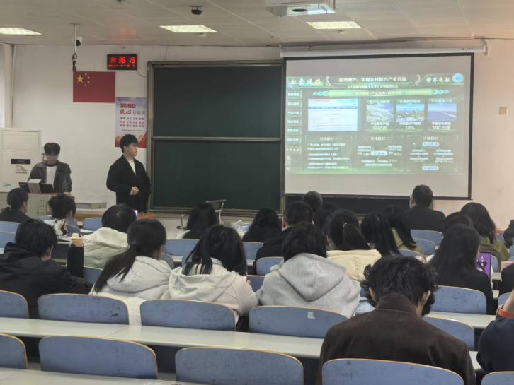 在路演环节,各团队依次登台借助PPT展示,从项目背景、市场分析、产品研发到发展前景等方面进行了系统阐述。选手们不仅突出项目的差异化优势,还紧扣当前市场需求与行业痛点,深入剖析了项目的可行性与现实意义,展现出扎实的专业素养和较强的实践探索能力。