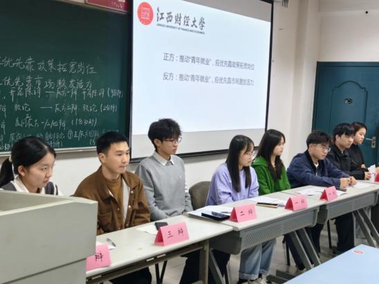 本次大赛作为学院在时政评论领域的首创性赛事,秉持“以评促学、以辩启智”的宗旨,设置了“知识抢答”与“团队辩论”两大环节。赛前,经济学院学术部准备了涵盖百道题目的时政题库,并公布了“县域经济升级的核心路径”与“青年就业的破局方向”两大辩论主题。选手们据此深入研习,运用区域经济学、劳动经济学等专业知识,精心构建论点,反复打磨辩论框架,为决赛的精彩交锋奠定了坚实基础。