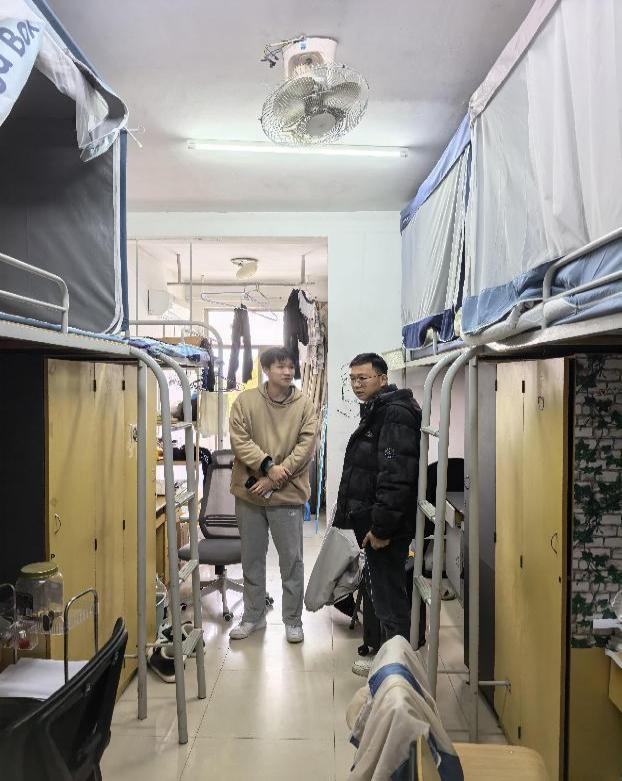 走访过程中,老师们与学生亲切交谈,了解同学们的假期生活、学习规划及思想动态,勉励大家及时调整状态,以崭新姿态迎接新学期。同时,重点排查了宿舍安全隐患,叮嘱学生增强安全防范意识,自觉遵守管理规定,共同维护安全文明的宿舍环境。