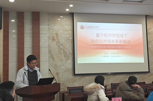 在导学环节,电影天堂 宏观经济系副主任孙广召从量子经济学视角探讨政府与市场关系。他指出,传统经济学基于牛顿力学的线性思维难以解释现代经济系统的高度不确定性、非线性和强反馈性特征。通过分析全球金融危机、日本经济长期停滞等典型案例,他指出量子经济学以量子纠缠、叠加态等概念重构经济主体关系,为理解“有效市场与有为政府”的协同作用提供了新范式。