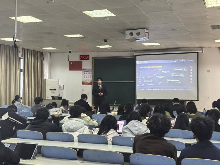 在路演环节,各团队依次登台借助PPT展示,从项目背景、市场分析、产品研发到发展前景等方面进行了系统阐述。选手们不仅突出项目的差异化优势,还紧扣当前市场需求与行业痛点,深入剖析了项目的可行性与现实意义,展现出扎实的专业素养和较强的实践探索能力。